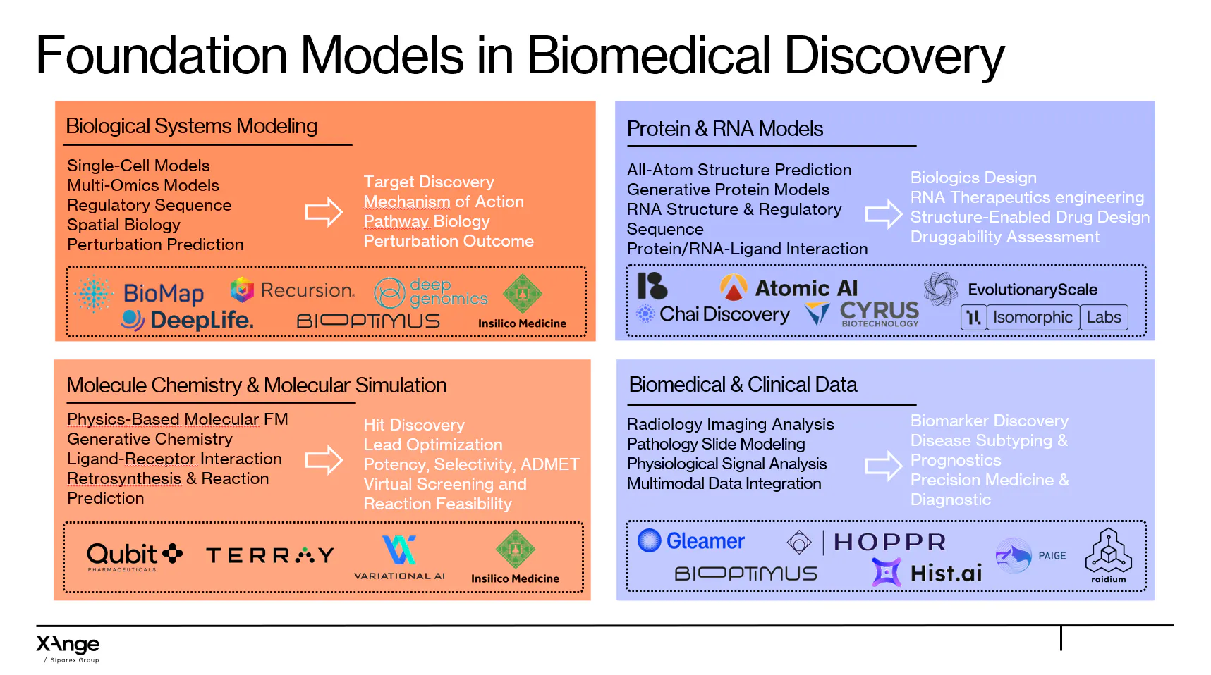 We believe this new generation of models has real potential to improve drug development, and specifically in an area that remains a bottleneck: clinical trials. One of the most promising directions is the development of virtual or digital twin models, which aim to simulate biological systems, tissues, or even groups of patients in silico. This matters because most drugs fail late in development because of patient differences, unexpected toxicity, and complex system-level biology. By combining multiple types of data, foundation models make it increasingly realistic to build virtual patient cohorts that can be used to test hypotheses, explore dose–response effects, identify likely non-responders, or surface safety risks before entering expensive Phase II or III trials. These models will not replace clinical trials, but they can help teams fail earlier, cheaper, and with better insight, addressing a part of drug development that earlier AI approaches largely left untouched